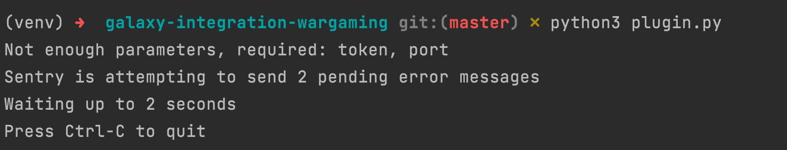 Код в plugin.py предполагает запуск плагина прямо из консоли. При запуске скрипта, он ругается на отсутствие аргументов token